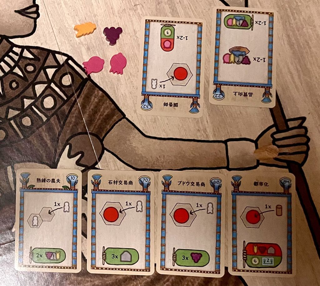既に配置済みの労働者に隣接しなければ、次の労働者を置けない為、スタPが序盤戦を広い方でやるか?狭い方でやるか?初手を打つその一瞬で戦場を決定出来るんだな。それは非常に興味深いけど、オマケの部分。