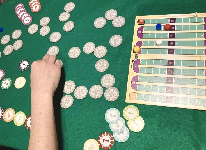 手元に残ってたチップの全ての合計数分、得点チャートを進めます