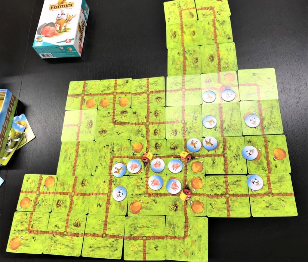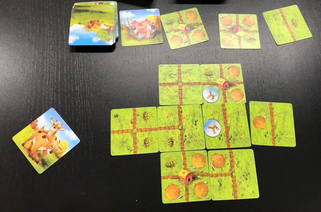 柵ができたので初めての動物。ヴァリアントありで遊んでいるので、同じ種類の動物がいれば、1匹1点、2匹目2点と高得点になっていきます。