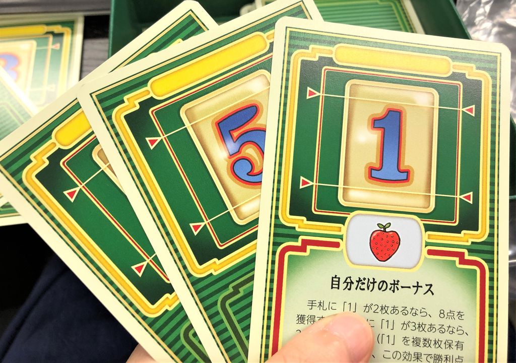 例えば、連番がボーナスなので集めていたら、急に次の特殊ルールがめくられて、ボーナスがなくなってしまったり。。ただし、特殊ルールが変わった瞬間ゲームが終わったらただの運じゃん…、ということはないように、調整されています。最低でも1手番は来ますので、ご安心を!