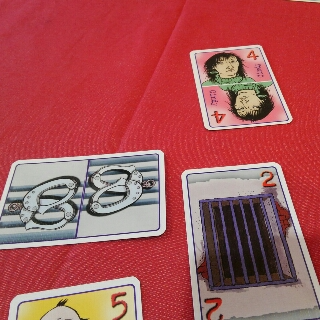大物が釈放された際には、もう悪いことはするんじゃないぞと見送りました。※手錠は、スタートプレイヤーカードです。
