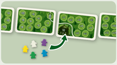 選択した色のゴーストをそれぞれ2体取ります。怖い遺跡にゴースト1つを置きます。もう一方のゴーストは、選択した色を思い出させるために保管しておきます。 |