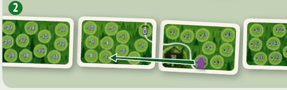 2) その後、アンジェリカは恐怖値「-12」の別のトリックに勝ちます。彼女はゴーストを恐怖トラックのスペース「+5」からスペース「-7」に移動します。 |