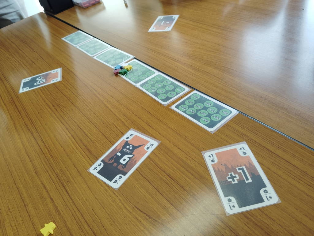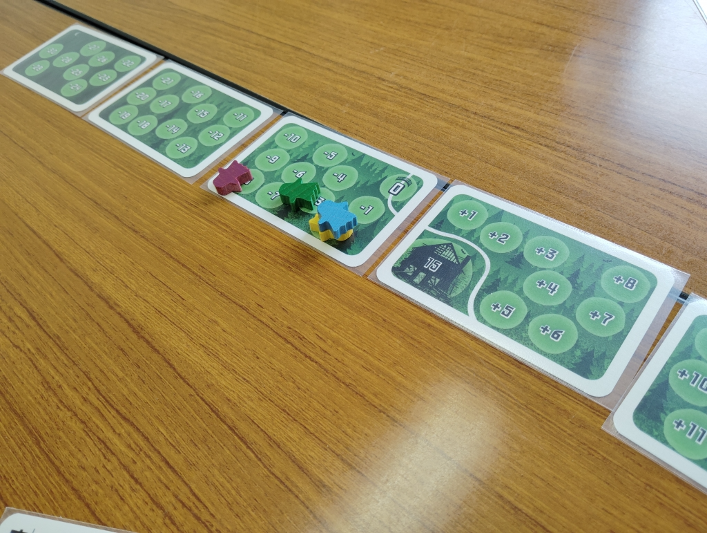 トリックを獲得したプレイヤーはプレイされたカードを集めて、色関係無く数字を合計したあとに駒を移動させます。