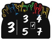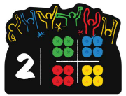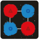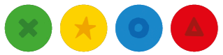各色には小さなシンボルが関連付けられており、誰もがプレイことができます。十字(緑)、星(黄)、円(青)、三角形(赤)。 |