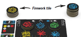 2つの表向きのスタック(あなたの右側または左側)のいずれか1つから花火タイル1枚を取ります。 |