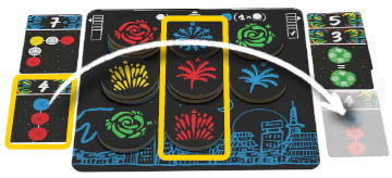 このタイルを取るには、ボード上に4つの色と4種類の花火がすべて見えている必要があります。 |