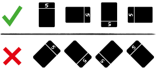 目標の方向 目標カードの条件を満たすため、カードを90°刻みで任意に回転させることができますが、斜めに回転させることはできません。 |