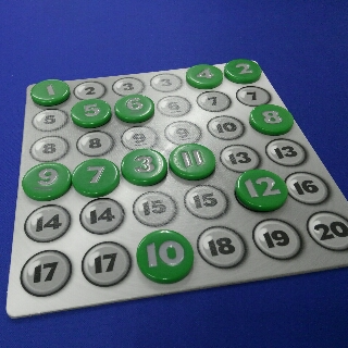 1~12のチップを20面ダイスのダイス結果に応じて配置していく。