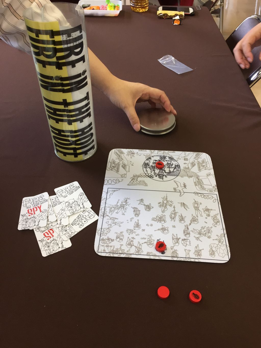 最初にカードが配られます。スパイ! と書いてあった場合、勝利条件を妨害する側に回ります。