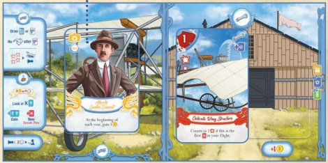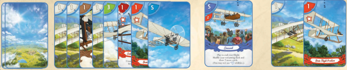 プレイヤーは黎明期の飛行機開発者となり、テスト飛行を重ねて機体を改造したり操縦スキルを会得したりして飛行距離の記録を伸ばして行きます。勝利点ではなく、最高記録だけを比べて勝敗が決まります。