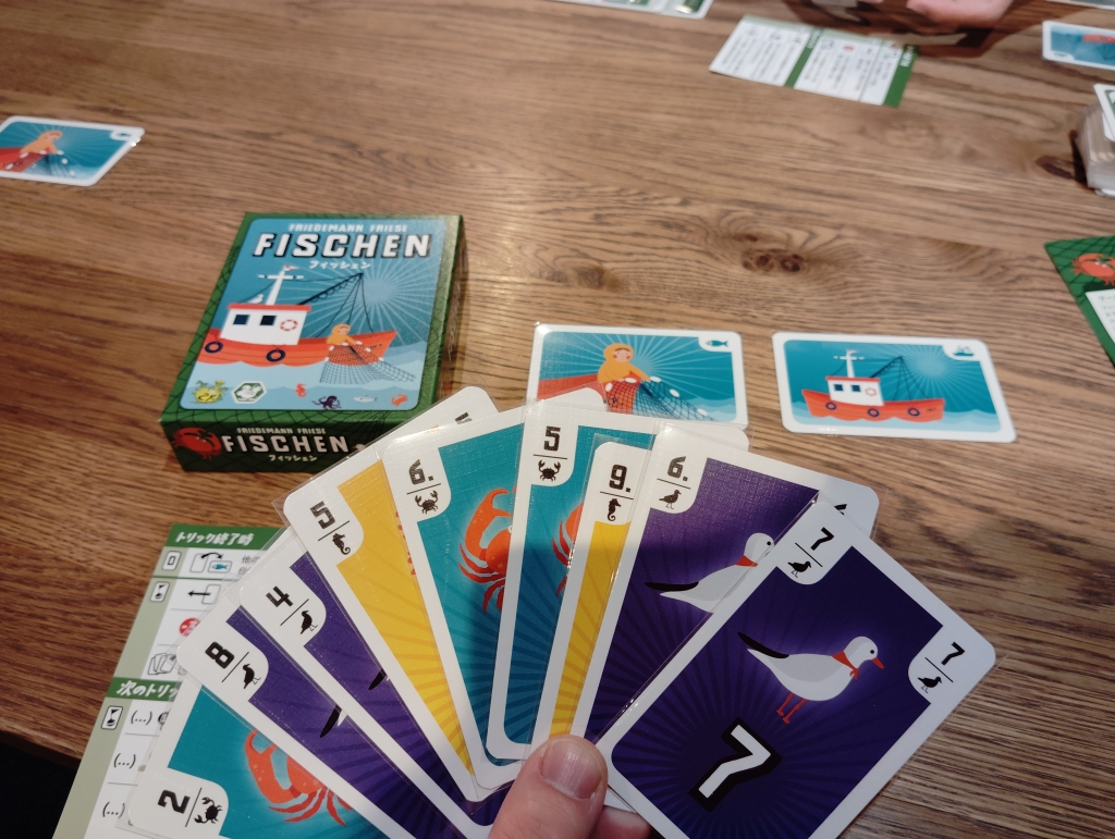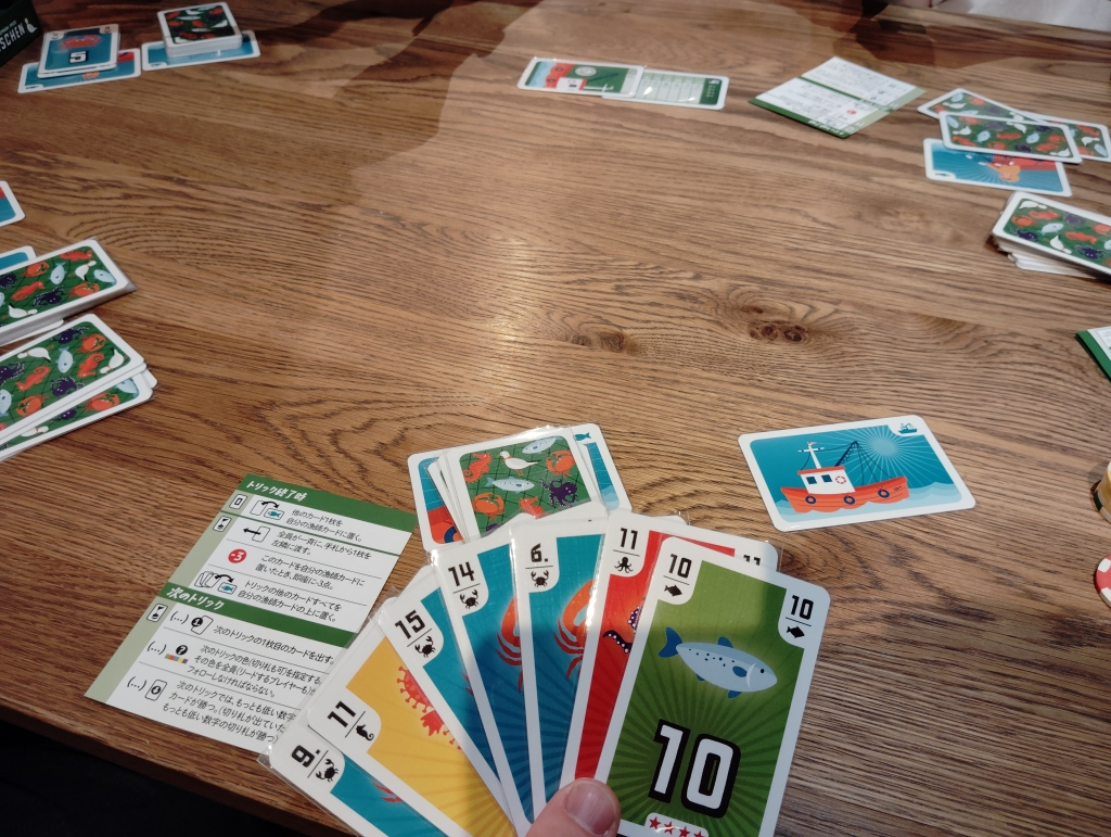 デッキ構築?とはなりましたが、うまくトリック獲得数を調整しつつ得点も獲得したいし、強いカードも欲しいとなるトリックテイキングゲームでした。