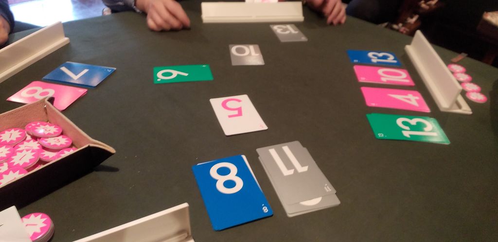 ただカードを裏面にすると「ピンクの5」として出せるという、正直たったそれだけのシンプルなゲームなのに、これが中々に悩ましい。