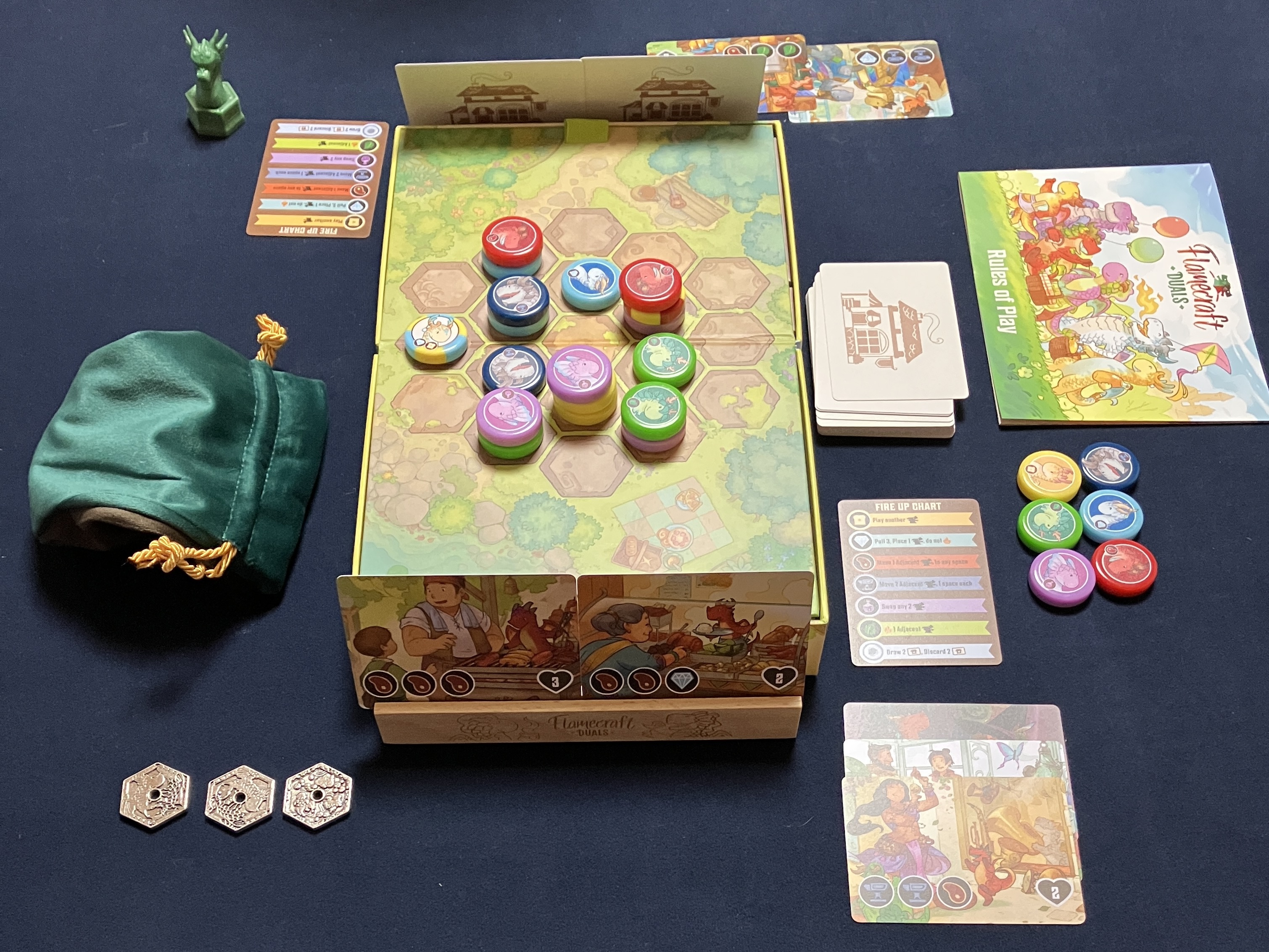 人とドラゴンが共存する優しい世界観で、イラストや色使いも落ち着いた雰囲気で統一されています。また、ケースがそのままゲームボードになるうえ、パーツを内部で仕切って収納できる点も好印象でした。