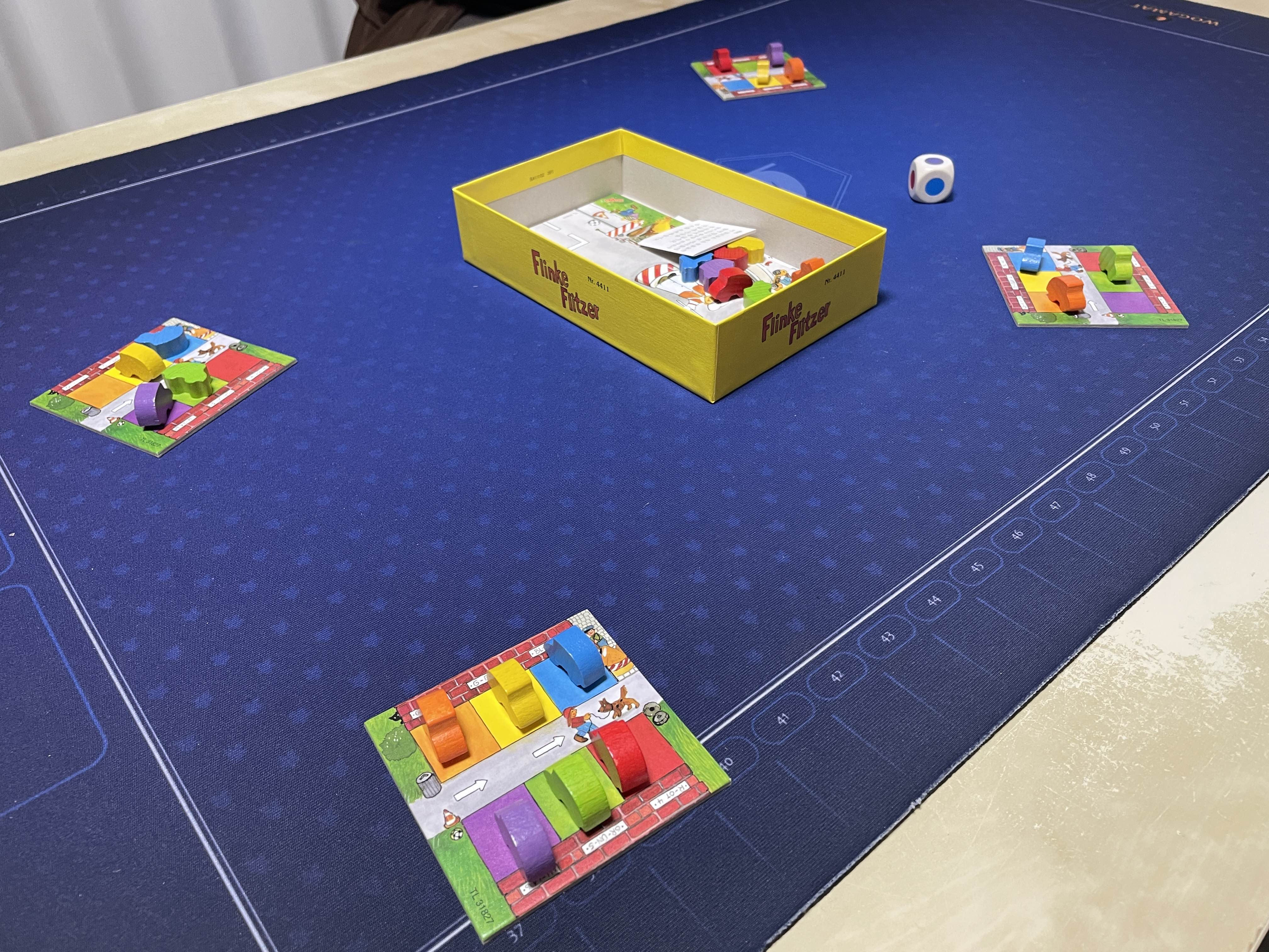 もしすでに止まっている色の車だったら、その止まっている車を左隣のプレイヤーに渡します。それも埋まっている場合、さらに左の、と続けます。全員埋まってたら、自分に戻らず、箱に戻します。