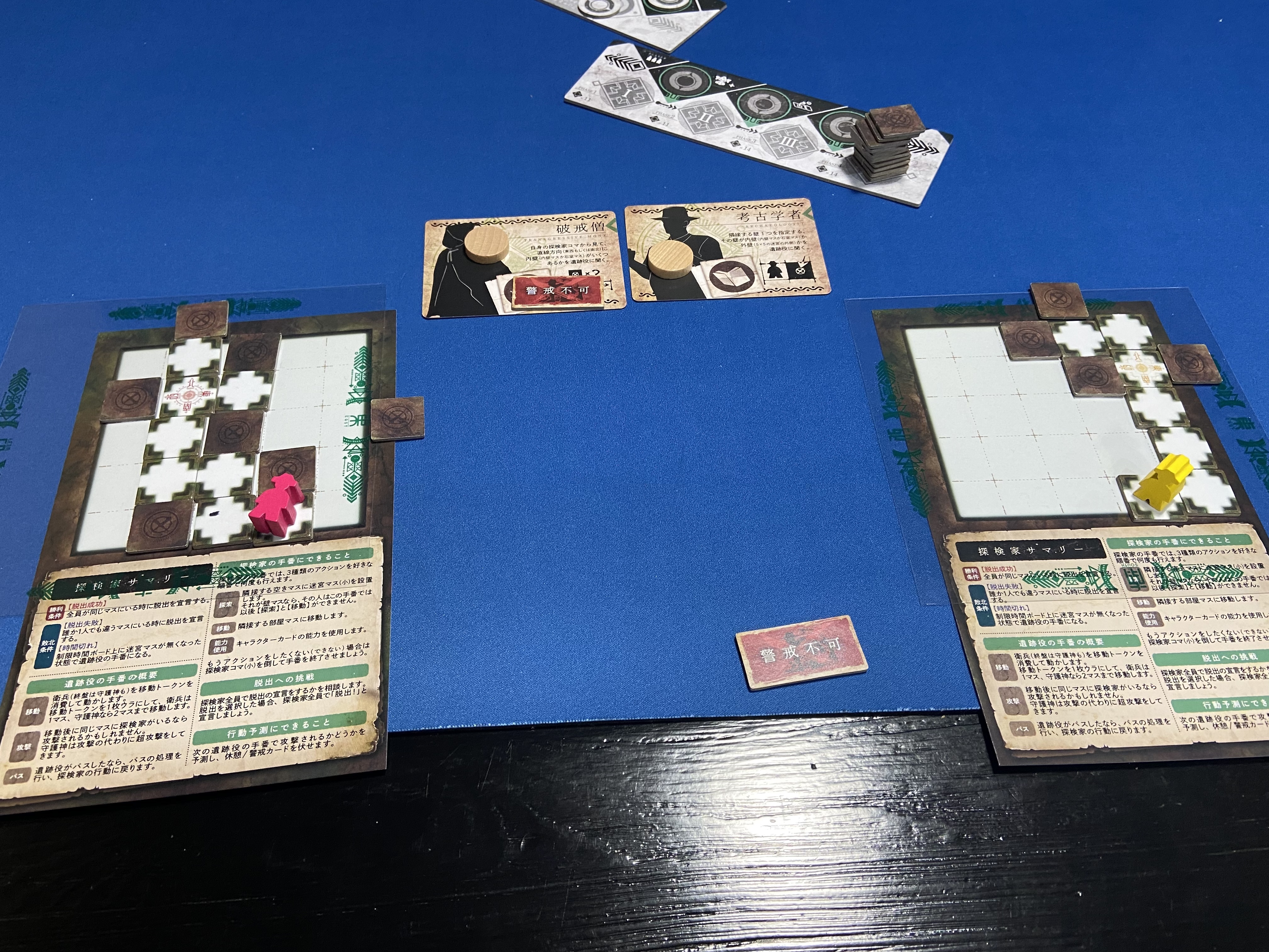 2人プレイで2回、それぞれ遺跡役と冒険者をどちらも遊べるような感じでやりました。自分が遺跡役の時は制限時間を枯らして勝利!ただ結構ギリギリの戦いでした。冒険者役の時は、考古学者の能力が非常に活きて勝利できました。とにかく5*5の範囲がどこなのか分かるかどうかは非常に大きかったと思います。