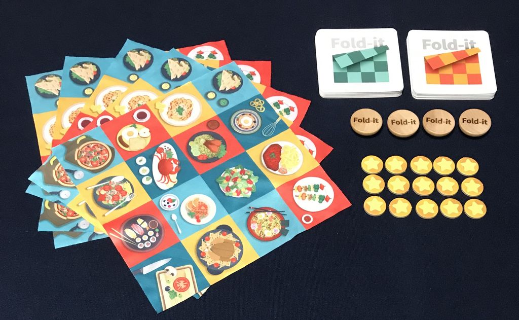 各プレイヤはレシピクロスを1枚持ち、これを折りたたんでお題と同じ図柄を作ります。
