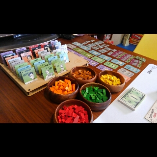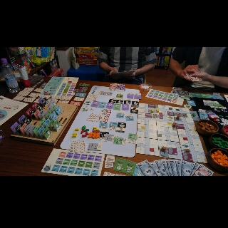 しかし、最後には他に商品を先に売れたりする算段の計画をミスしてその差で負ける。ひとつのミスが命取りに・・・。先ほど勝たれた方も今回はひとつのミスで間に合わず、他のゲームでも言えることだが、このゲームは一手のミスによるズレがなかなかやぞ。このギリギリ感は好きだぜ。