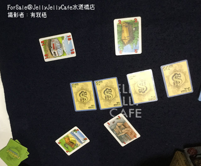 カード自体は数字被りは全くないのですが、最高得点になるお金15000ドルカードは2枚しかなく、そのカードもお金カード2枚は抜き取られるのでどのタイミングで出てくるか判らず(更にいうと出てこない可能性もある)、1枚場に出たら取りに行くかどうかを悩まざるを得ません。もちろん最高価値30の不動産を持っていれば問題ないのですが、その不動産を手に入れる為にじゃあいくら出す? って話でもありますし、既に自分の持っている最高価値の不動産より高い不動産が場に出ていたかどうかのカウンティングの要素もあります。そういう点で、バッティングの要素もかなりあるゲームです。バッティングしないのにバッティング! 高い数字のカードがあるからと言って、最高得点が取れるとは限らない悩ましさ。逆に最低価値の不動産でも、出すタイミングによっては換金出来たりする、という読み合いの要素の強いゲームでもあります。