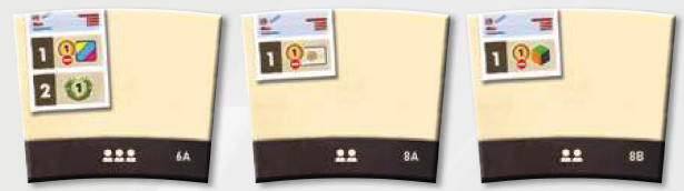 3人用ゲームでは、1から9までの数字が付いたカードが現れるまでスポーンカードをめくります。その数字の空き地トークンを取り除き、未使用のプレイヤー色の建物トークンを配置します。