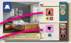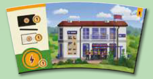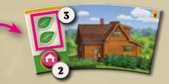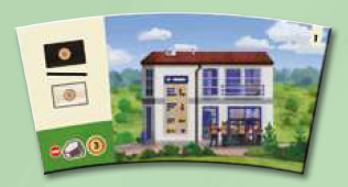 3. プレイヤーボードの左下にある指定されたスペースに6つの建物トークンを配置します。