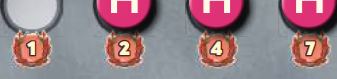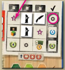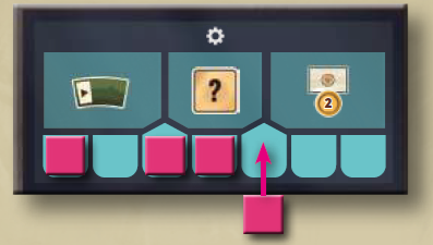 アクションポイントトラック アクションを実行した後、アクショントークンを1スペースまたは2スペース下に移動して、ターン終了までに残っているアクションポイントの数を確認します。 |
