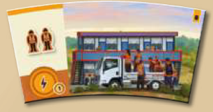 3人用ゲームでは、1から9までの数字が付けられたカードが現れるまでスポーンカードをめくります。その数字の製材所の建物のタイルを裏返し、アップグレードされた面を上にします。未使用のプレイヤー色の建物トークンをアップグレードアイコン上に配置します。
