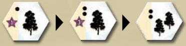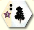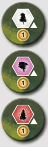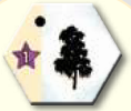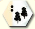 森林エリアには15のヘクススペースがあります(そのうち4つは2つのヘクスがつながったダブルスペースです)。各スペースの木の種類は、ゲームボードにあらかじめ印刷されています。対応する伐採トークンは、ゲームのセットアップ中にボードに配置されます。伐採機トークンは森林エリア内を移動します。