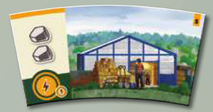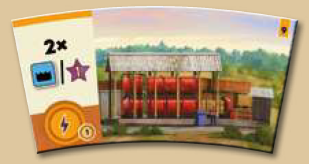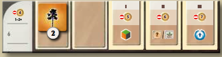 左上隅には、プレイヤーが木材トークンを保管および処理するストレージがあります。これらの木材トークンは、プレイヤーの契約カードを履行するために使用されます。ゲーム開始時のストレージは利用可能なスペースは2つだけで、プレイヤーターン中に新しいスペースを購入できます。