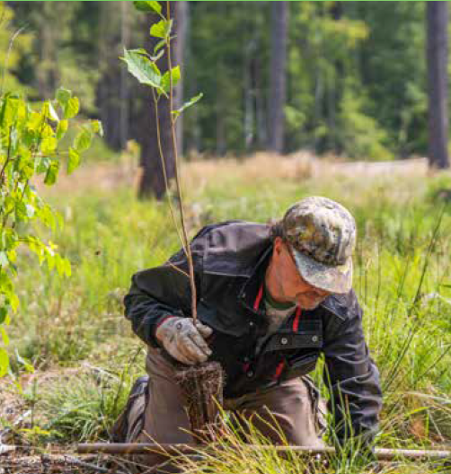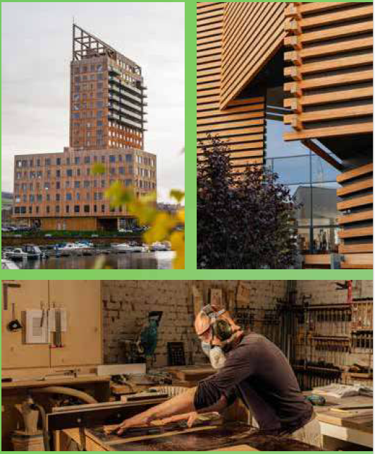 木材は、再生不可能な材料に取って代わり、成長に伴い温室効果ガスを吸収する、二酸化炭素排出量の少ないユニークな生態リソースです。木材を輸入する代わりに、木材を現地で加工し、ヨーロッパ種を伐採することで、環境への影響が軽減されます。エキゾチックな木材を伐採すると、熱帯雨林が破壊され、排出量が増加することがよくあります。木材はリサイクル可能で自然に分解され、エネルギー源としても使用できます。