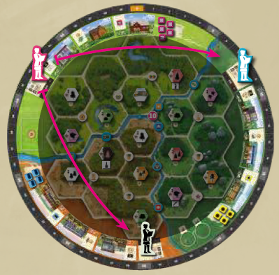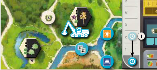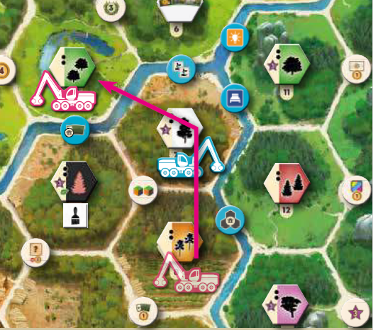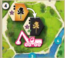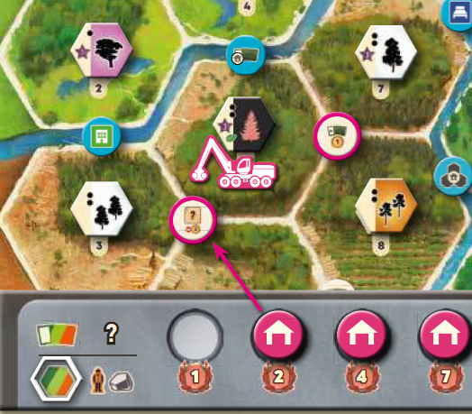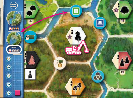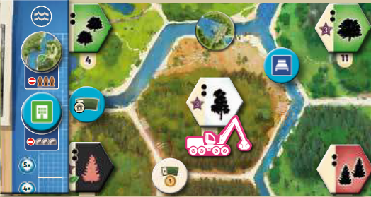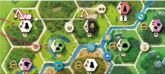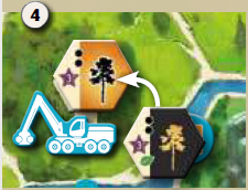 18. 最後のプレイヤーから反時計回りに、各プレイヤーは自分の伐採機トークンを任意のヘクスフィールドに置きます。