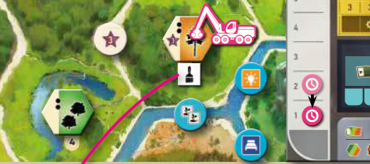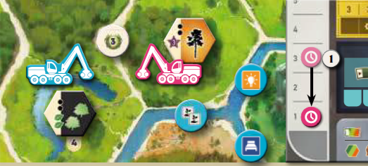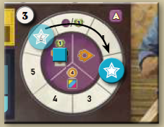 2. アクショントラックの数字「3」のスペースにアクショントークンを置きます。
