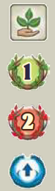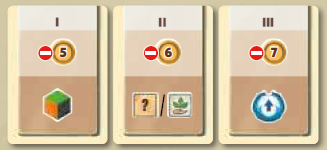 16. 各プレイヤーは、共通サプライから1つの苗木を取ります。プレイヤーの順序によって異なるコインを取ります:ファーストプレイヤーは3コイン、2番目と3番目のプレイヤーは4コイン、4番目のプレイヤーは5コイン。