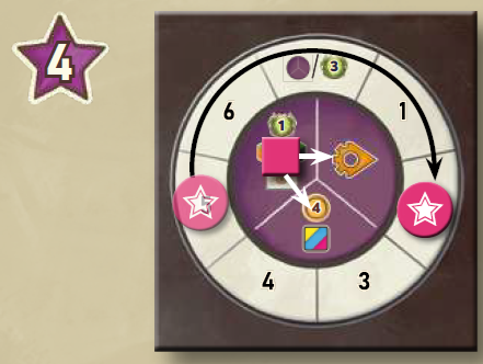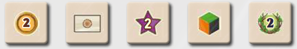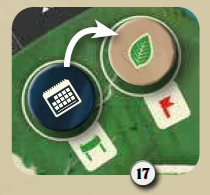 17. ファーストプレイヤーはスタックから一番上のラウンドトークンを公開し、効果を適用します。すべてのプレイヤーはトークンのボーナスを受け取ります。