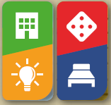 一番下には建物トラックがあり、プレイヤーの建物トークンが保管されています。