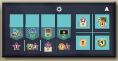 1. 各プレイヤーはプレイヤーボードと1つの色のすべてのコンポーネントを取ります。プレイヤーボードはAと表記された面を使用します。