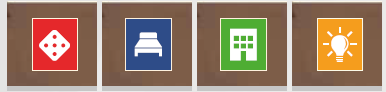 各開始契約の右下には、ゲームの開始時に製材所の管理者を配置する必要がある色を示すHQシンボルがあります。 |