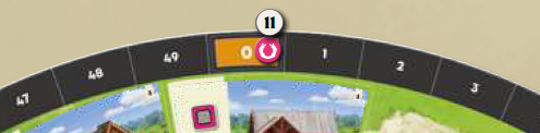 11. ゲームボードの端にあるスコアトラックの「0」のスペースにスコアトークンを置きます。