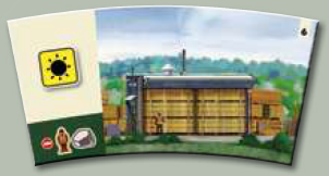 6. 適切な木材加工トークンを、一致する木材加工シンボルの付いた3つの製材所の建物の隣に配置します。