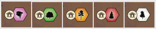 木材はゲーム内で最も重要なリソースです。5種類の木があり、どの種類の木も3つのヘクスで見つかりますが、常に伐採の難易度と追加の報酬が異なります。