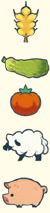 トマトを欲している顧客の場合は、小麦を2袋くれます。希望する羊を提供すると、顧客は余ったキュウリを豚と交換してくれます。キュウリ2本と小麦1袋で、ただちに別の3つの顧客の要望の詳細がわかります。