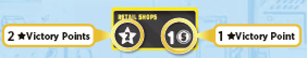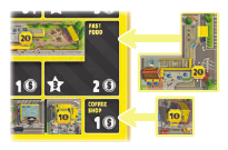 さらに、プレイヤーは都市の一部の商業施設から一定数の名声を獲得します。各商業施設の名声値は、プレイヤーボードに印刷されています。