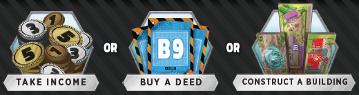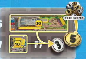 各プレイヤーは、都市に建設した商業施設全体のコインアイコンの合計値に等しいコインをサプライから受け取ります(「収入の獲得」アクションと同じですが、追加の5コインは獲得しません)。