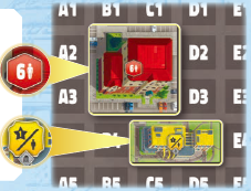 役立つヒント! メインボードからあなたの建物を探さなくても、プレイヤーボードの空きマスを見れば、建設した建物から得られるコインをすばやく集計できます。他のタイプの建物でも同様に行うことができます。 |