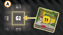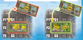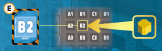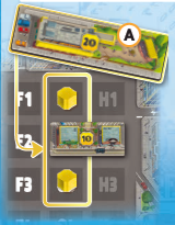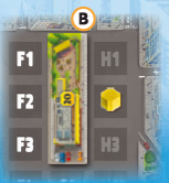 (F)最後に、黄は都市ボードの区画B2に自分の色の区画マーカーを配置します。 |