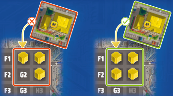 建物の上に建設した後に空き地が残る場合、これらを埋めるために利用可能な区画マーカーがあなたのサプライに必要です。そうでなければ、このアクションを実行できません。