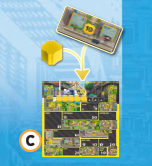 (5) 都市ボードの対応する区画に、あなたの区画マーカーを1つ配置します。