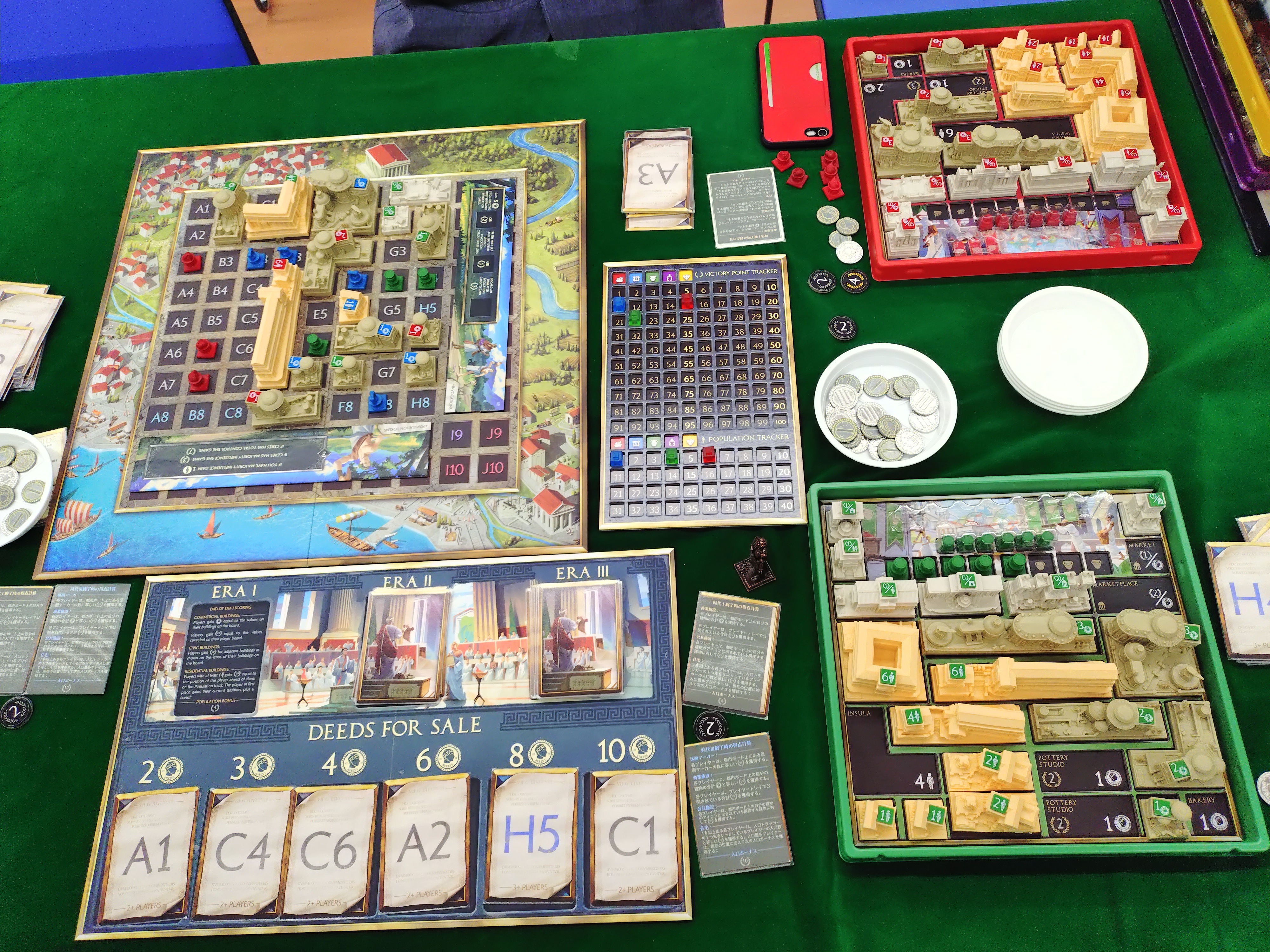 一見、物凄く重ゲーのように見えますが、1ゲーム1時間ちょっとの中量級です。ルールも簡単で、土地の権利を買って、そこに建物を建てるだけです。