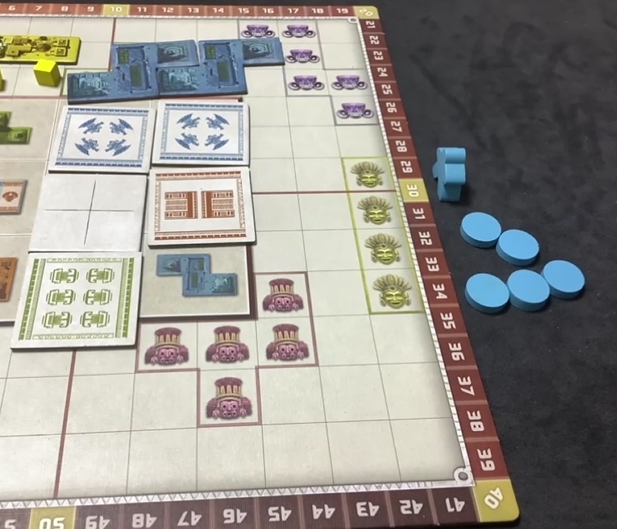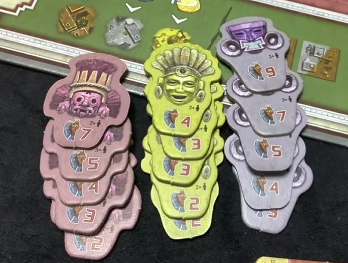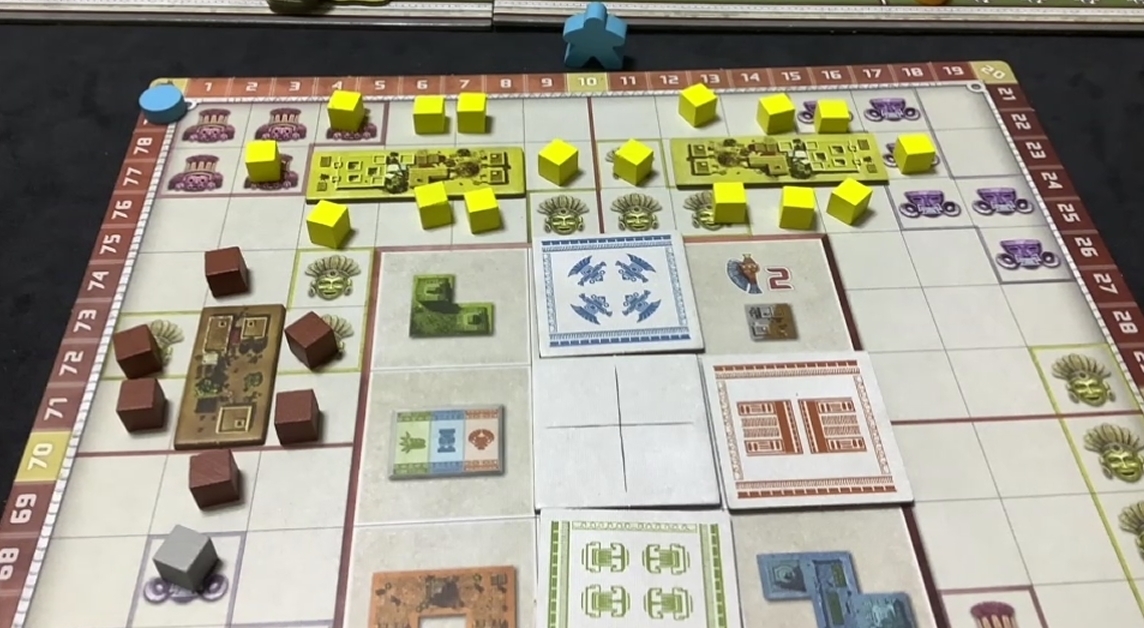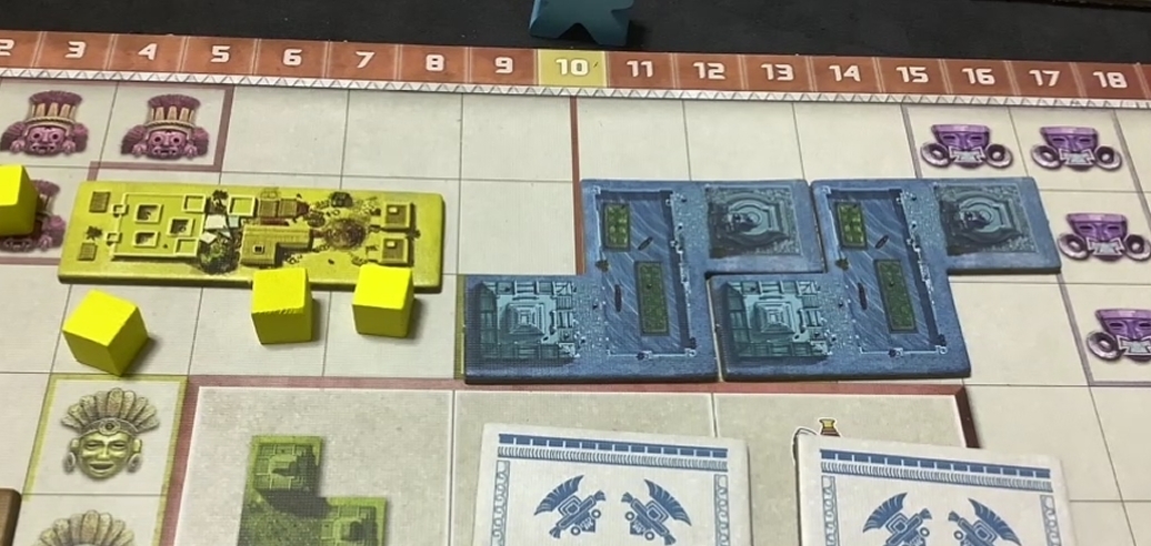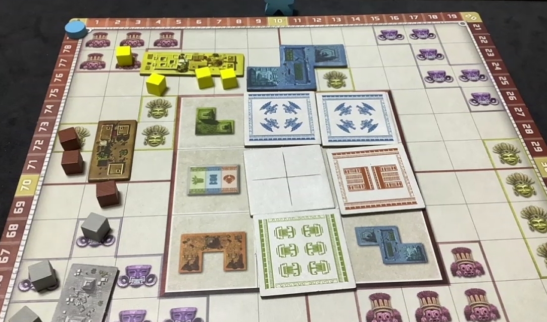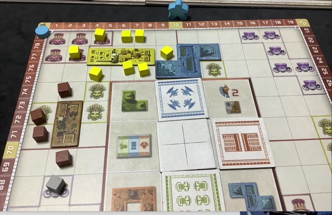 ラウンドごとに減らされるパワートークン、そしていうことの聞かない建築士と3人でやったら4ラウンド目がないという仕様、ちなみに建物タイルやピラミッドタイルは毎ラウンド1枚か2枚しかありません。