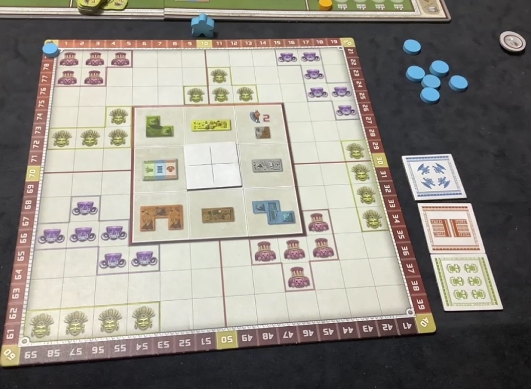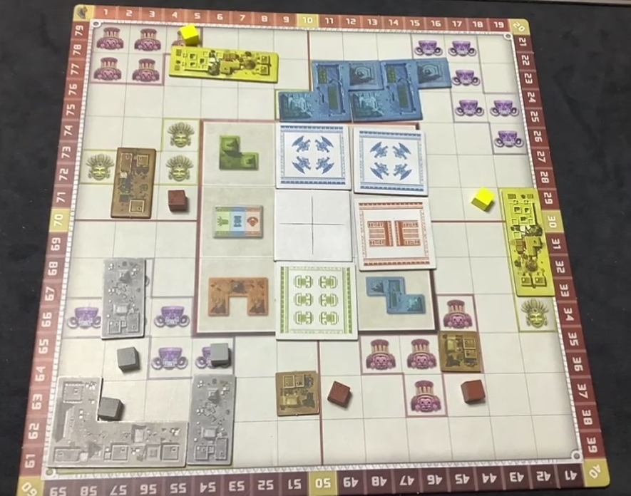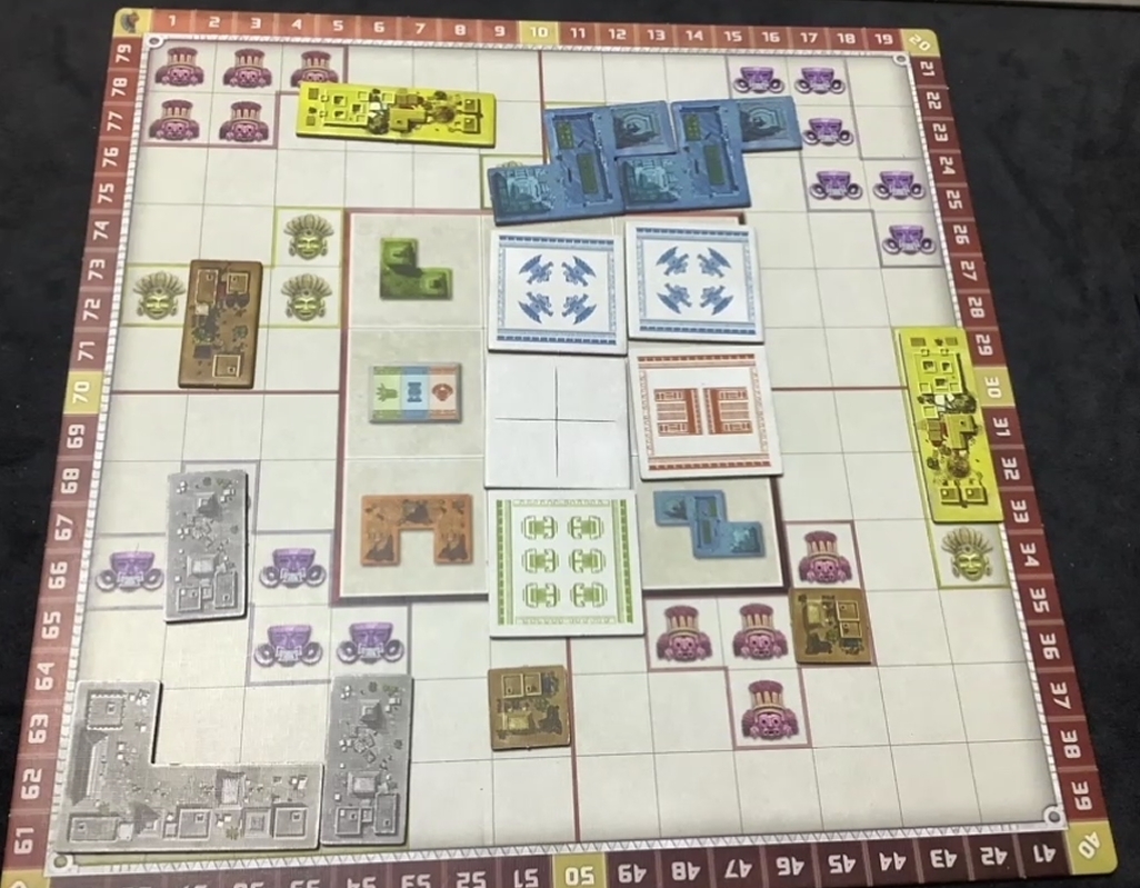 目的は自分の個人タイルに建物や、神殿タイルを配置し、中央にピラミッドを建設してティオティワカンのを発展していき創始者の称号をもらいましょう。というものである。